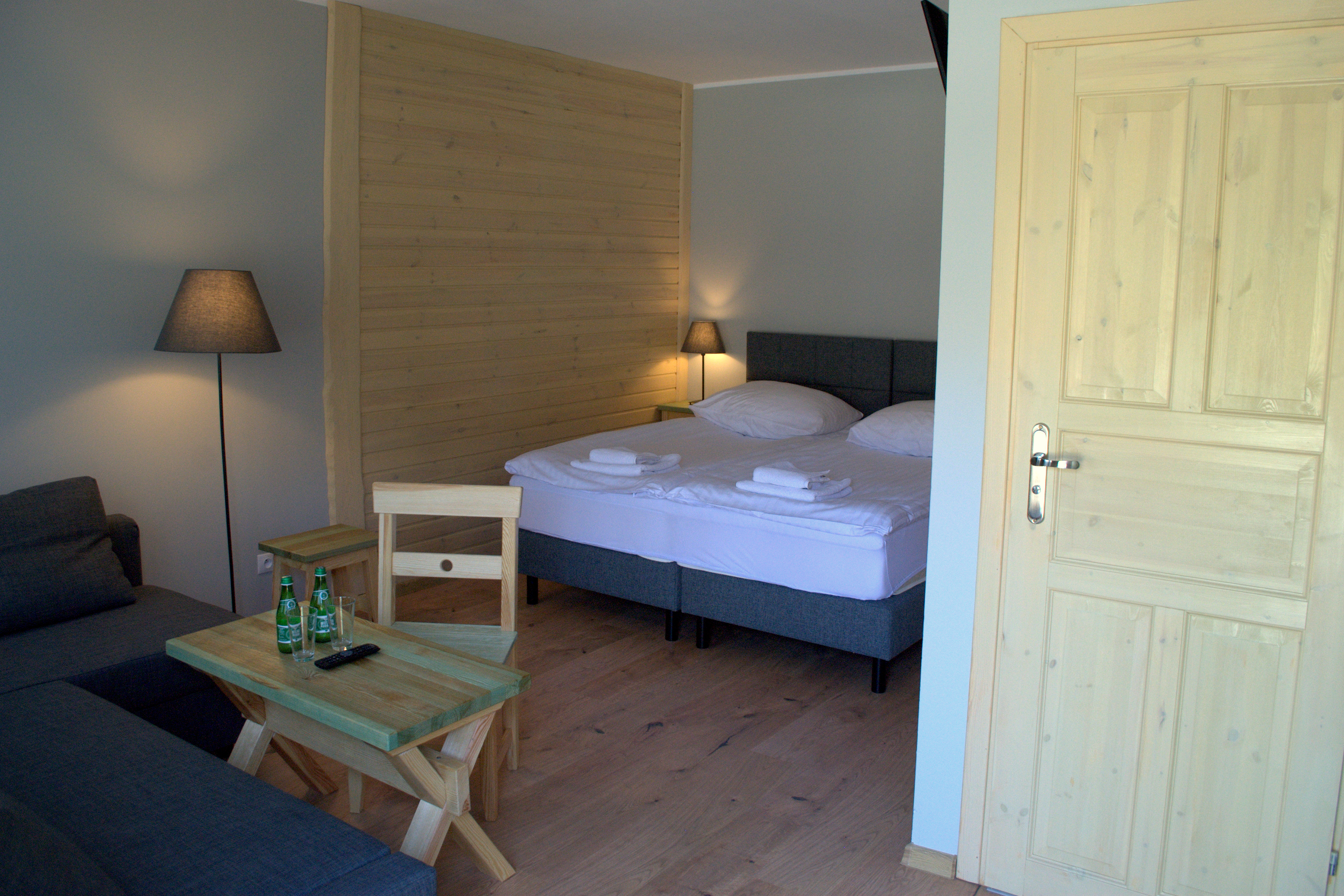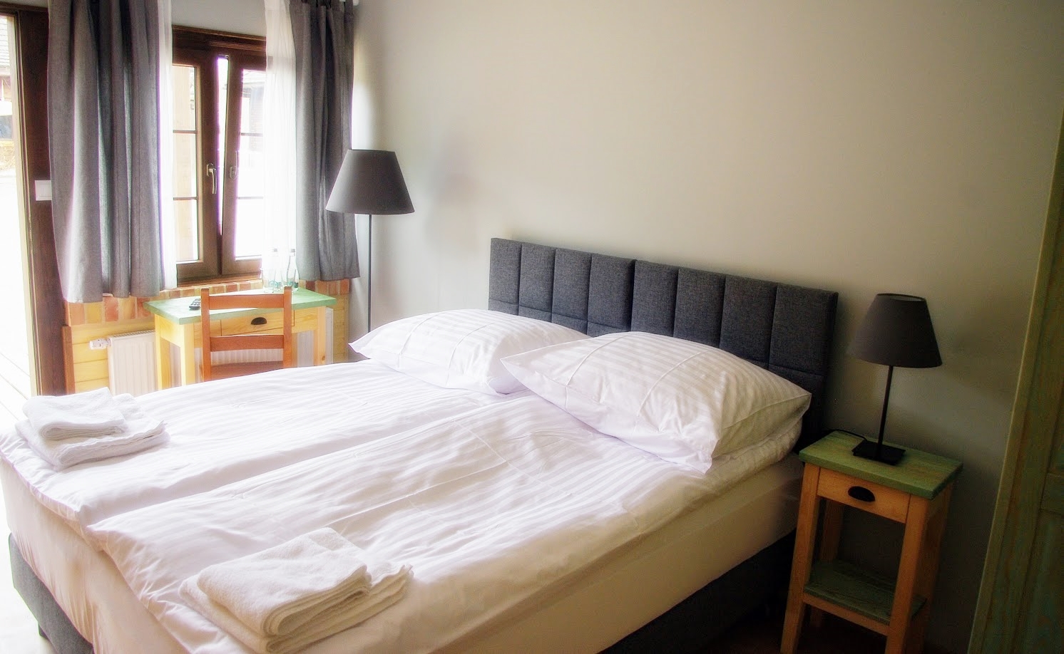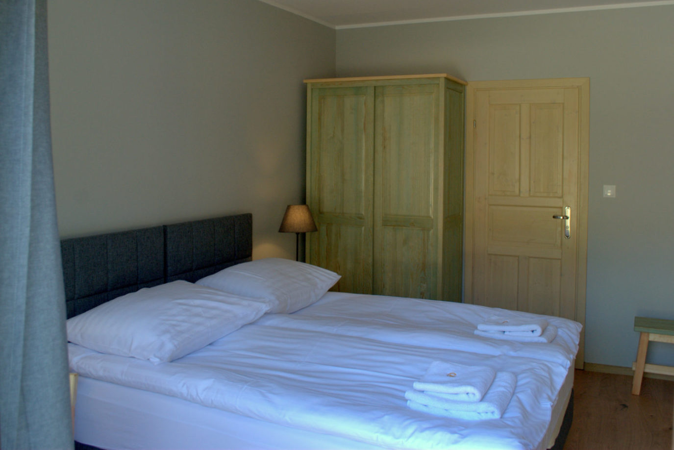 Pokoje 2-os. z łazienkami (ok. 15 m2), jedno wspólne łóżko 2-os. lub dwa osobne łóżka 1-os. – możliwość wyboru ustawienia, TV. Pokoje znajdują się na parterze, każdy z osobnym, niezależnym wejściem bezpośrednio z tarasu ciągnącego się wzdłuż elewacji budynku. Ze względu na wielkość pokoju i umeblowanie nie ma możliwości wstawienia do pokoju dodatkowego łóżka, bądź łóżeczka dla dziecka.